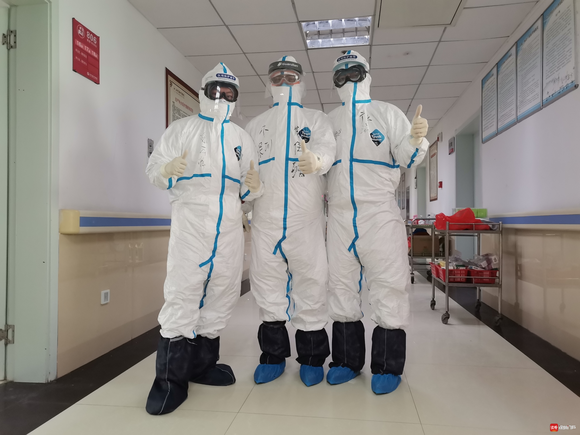 深圳醫(yī)療隊(duì)涂云亮、徐佳卿、黃斌在監(jiān)利縣中醫(yī)院重癥監(jiān)護(hù)病房。
