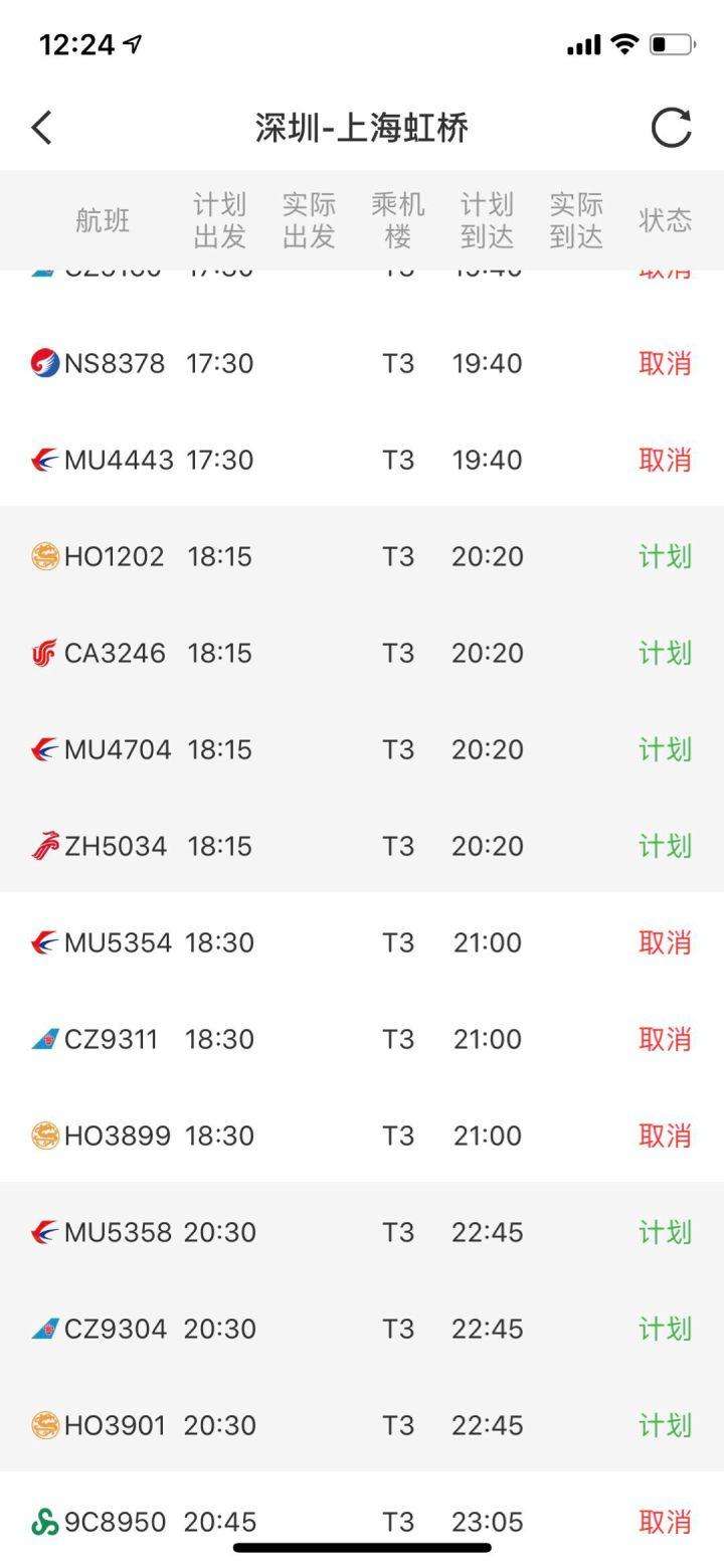 不僅是深圳飛往杭州的CA1736航班,記者發(fā)現(xiàn),今晚深圳飛往北京、上海、南京等國(guó)內(nèi)多個(gè)城市的航班,均顯示為取消狀態(tài)。而原計(jì)劃17:45由深圳飛往杭州的CA1734和原計(jì)劃22:05由深圳飛往杭州的MF8384航班,均顯示為取消狀態(tài)。