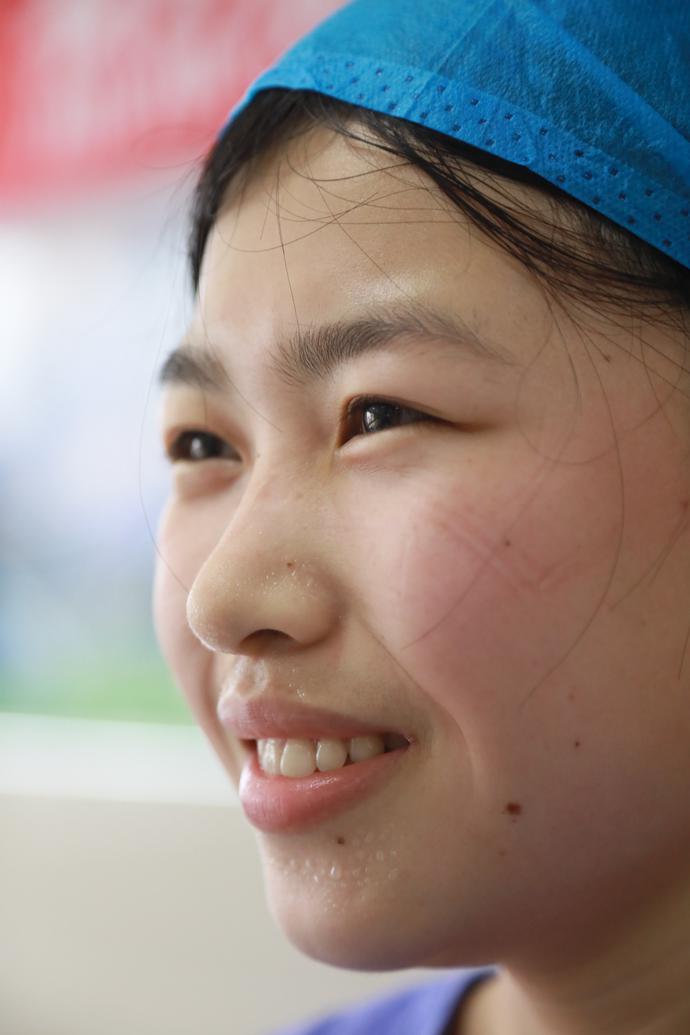 連日的工作,緊張又忙碌,同事?lián)耐跹沛蒙眢w吃不消,勸她去休息,她總是擺擺手,連聲說:“沒事兒,大家放心?!惫ぷ鲿r的王雅婷非常細致,絲毫不敢怠慢。面對患者,她總是用耐心溫柔的話語與他們溝通,認真服務每個人。小小的她總能讓患者感到溫暖,大家都對她贊不絕口,夸她為身邊的人注入了滿滿的能量。工作雖然辛苦,但看到患者的情況一天天好轉,王雅婷覺得“再辛苦再累也是值得的”。