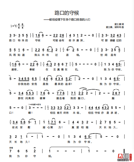 近日,龍崗區(qū)文化廣電旅游體育局職工夏士康、梁玲玲聯(lián)合北京自由音樂人劉珂銘創(chuàng)作的歌曲《路口的守候》正式推出?!奥房冢厥獾氖睾?,可能會有些唐突,可那肆虐過的風雨知道,我從未有過退縮……”該歌曲以抗疫一線實錄為背景,深情表達了對以“路口戰(zhàn)士”為代表的抗疫戰(zhàn)士們的敬愛之情,及眾志成城、抗疫必勝的堅定信念。