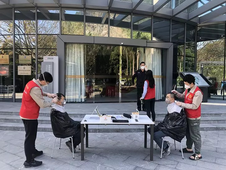二月二,龍?zhí)ь^,一把椅子、一面鏡子、一套剃發(fā)工具,鹽田能源生態(tài)園的簡易理發(fā)室開張啦。防疫先鋒戰(zhàn)斗隊五人義剪小分隊隨即開始行動,對理發(fā)室開啟自然通風(fēng),對理發(fā)用具進(jìn)行消毒,清潔雙手,全部使用一次性“斗篷”,確保理發(fā)過程中一“客”一換一消毒……準(zhǔn)備工作做好后,Tony老師開啟微信排號,統(tǒng)一戴上口罩,測量體溫登記后,提拉剪推,一氣呵成。本次義剪為30余名員工解決了“頭”大事,大家“輕裝上陣”,將以更飽滿的精神投入到疫情防控和安全生產(chǎn)工作中。