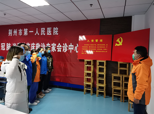 廣東省支援荊州醫(yī)療隊(duì)臨時(shí)黨委組織新黨員宣誓活動(dòng)主會(huì)場(chǎng)和部分分會(huì)場(chǎng)現(xiàn)場(chǎng)。 陳廣泰 攝