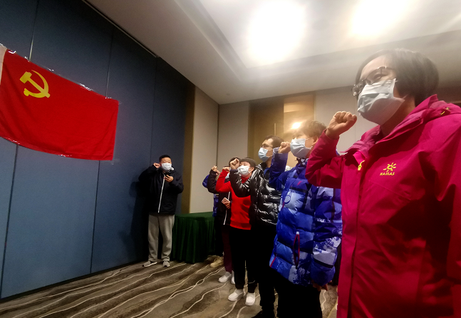 見圳客戶端·深圳新聞網(wǎng)2020年3月9日訊 3月9日晚7時(shí)30分,廣東省支援荊州醫(yī)療隊(duì)組織新黨員入黨宣誓活動(dòng)。深圳邊檢總站醫(yī)療隊(duì)和北大深圳醫(yī)院醫(yī)療隊(duì)分別在荊州市第一人民醫(yī)院分會(huì)場(chǎng)和監(jiān)利縣廣東醫(yī)療隊(duì)駐地酒店分會(huì)場(chǎng)組織黨員參加了宣誓活動(dòng)。經(jīng)廣東省支援荊州醫(yī)療隊(duì)臨時(shí)黨委批準(zhǔn),來自深圳邊檢總站醫(yī)院醫(yī)療隊(duì)的護(hù)士許梅與來自北大深圳醫(yī)院的護(hù)士曹慧敏、趙晨曦作為新黨員火線入黨。