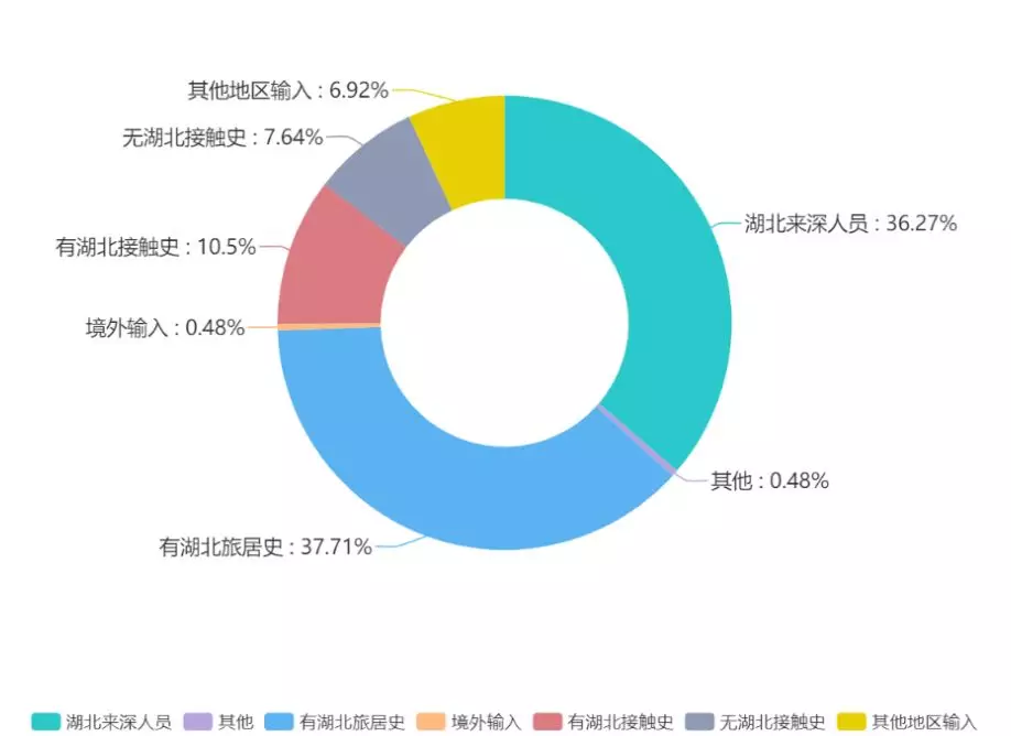 ▲所有輸入型病例中,近六成與湖北武漢有關聯(lián),湖北省其他城市也為重點來源地區(qū)??梢?,對湖北來深人員、有湖北旅居史人員的管控工作是防疫工作的重要一環(huán)。