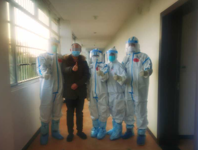 3月10日下午4時(shí),深圳醫(yī)療隊(duì)的5名隊(duì)員前往監(jiān)利縣委黨校隔離點(diǎn),去回訪部分治愈出院的新冠肺炎患者,為他們送去慰問品,同時(shí)與監(jiān)護(hù)人員協(xié)同對(duì)他們的康復(fù)情況進(jìn)行跟蹤觀察。監(jiān)利縣防疫部門臨時(shí)特許前方記者隨同進(jìn)入隔離區(qū)進(jìn)行了采訪。