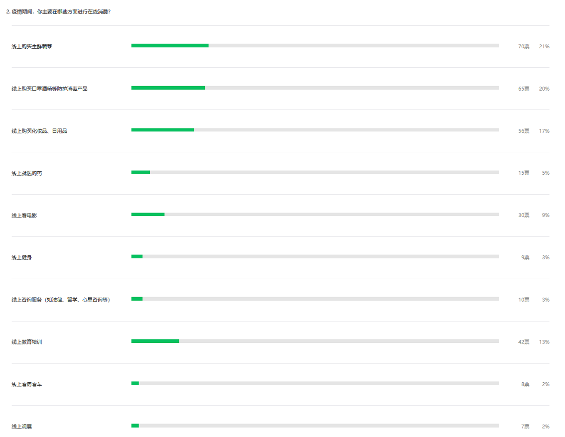 疫情在無意中改變了市民的原有生活習(xí)慣,超八成深圳人表示疫情期間主要以“在線消費(fèi)”為主,而生鮮蔬菜、口罩酒精、化妝日用品、教育培訓(xùn)、看電影成為疫情期間深圳人“在線消費(fèi)”的五大主要領(lǐng)域。