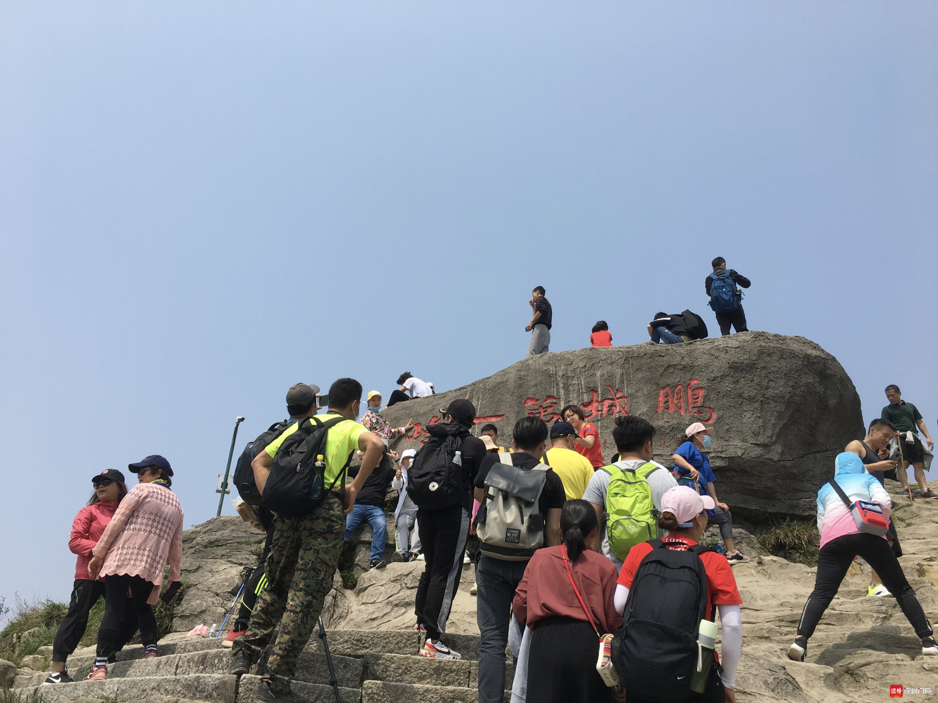 好漢坡是去往大梧桐的登山道之一,長度有100多米,非常陡峭,但游人卻比其他登山道多了許多。整個(gè)陡坡中部種滿一排杜鵑,吸引游人前往觀賞和拍照。在大梧桐,刻有“鵬城第一峰”的巨石是海拔最高處,是整個(gè)梧桐山游客最密集的地方。在巨石前,拍照需要排隊(duì),還有游客對(duì)著群山吶喊。