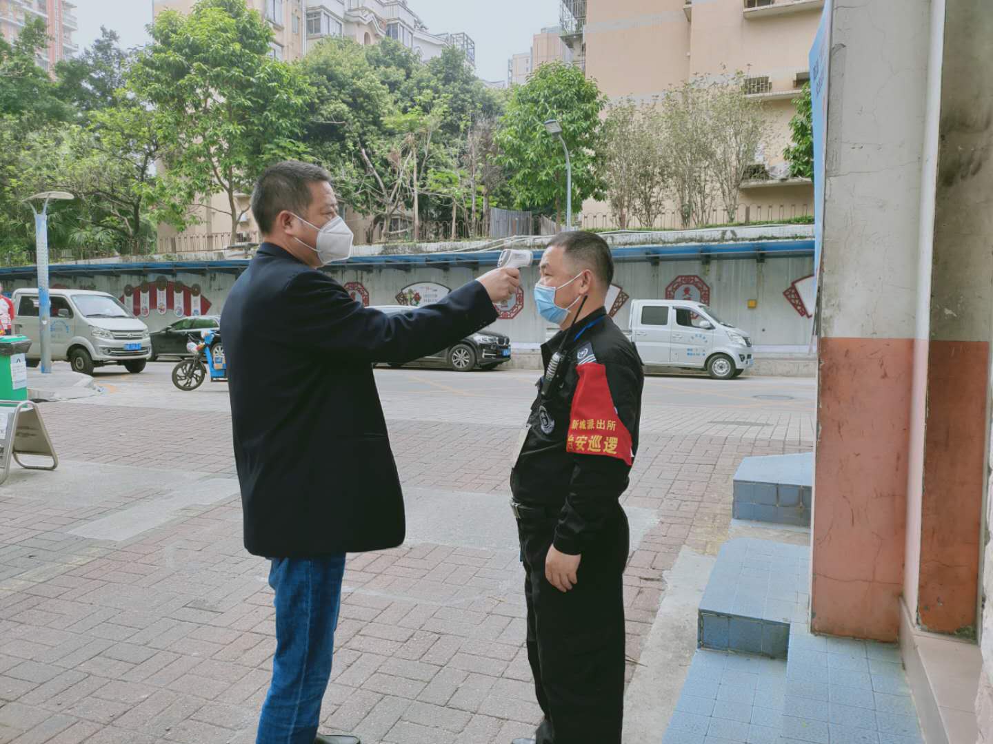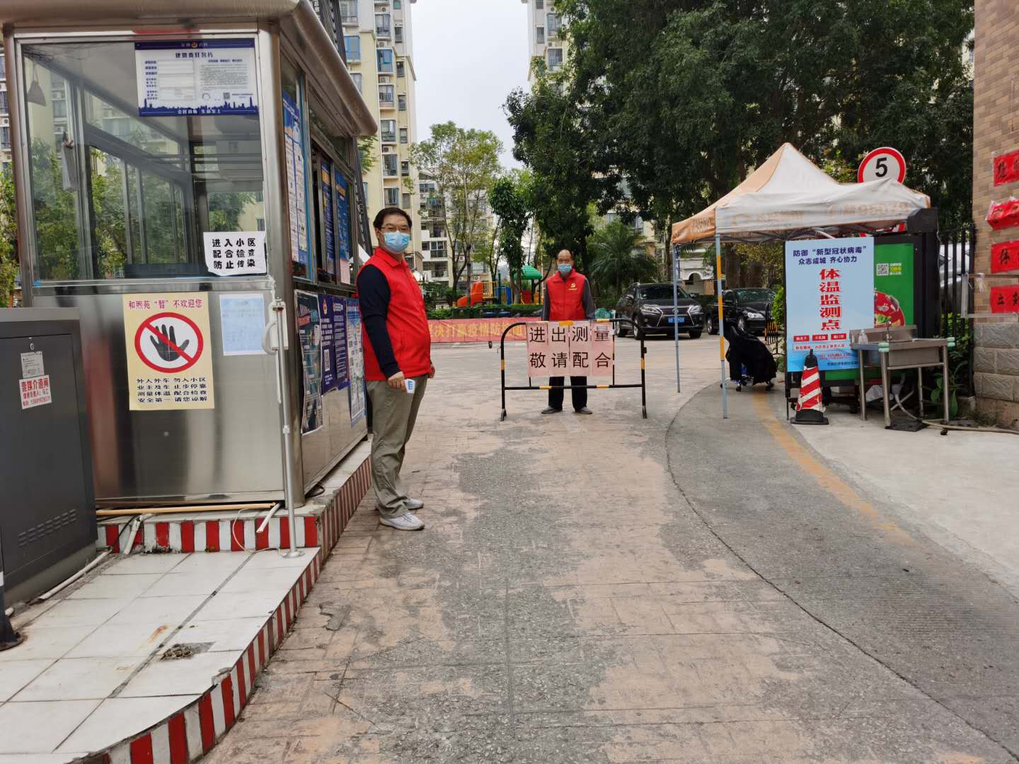 “梁經(jīng)理,我也是一名黨員,我申請(qǐng)加入咱們小區(qū)的疫情防控隊(duì)伍。”在蔡速達(dá)的帶動(dòng)下,兒子蔡榮釗也積極投身防控“疫”線中。每日下班后,他都從寶安的工作單位趕回小區(qū),來到門崗卡點(diǎn),為進(jìn)出小區(qū)人員進(jìn)行登記、測(cè)量體溫,攔截外來人員和車輛。蔡榮釗這一堅(jiān)持,就是一個(gè)多月,得到了物業(yè)管理處和業(yè)主(住戶)們的高度好評(píng)。
