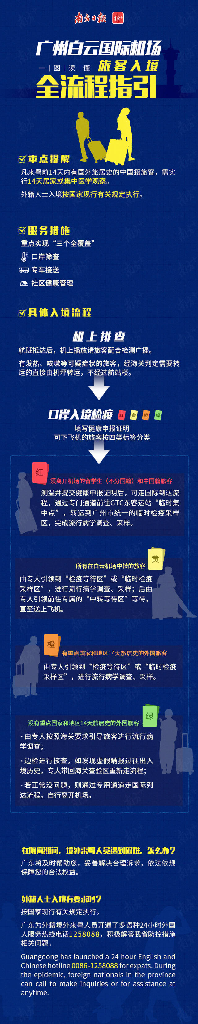 抵粵人員要主動(dòng)申報(bào)健康信息,配合做好入境檢疫工作。