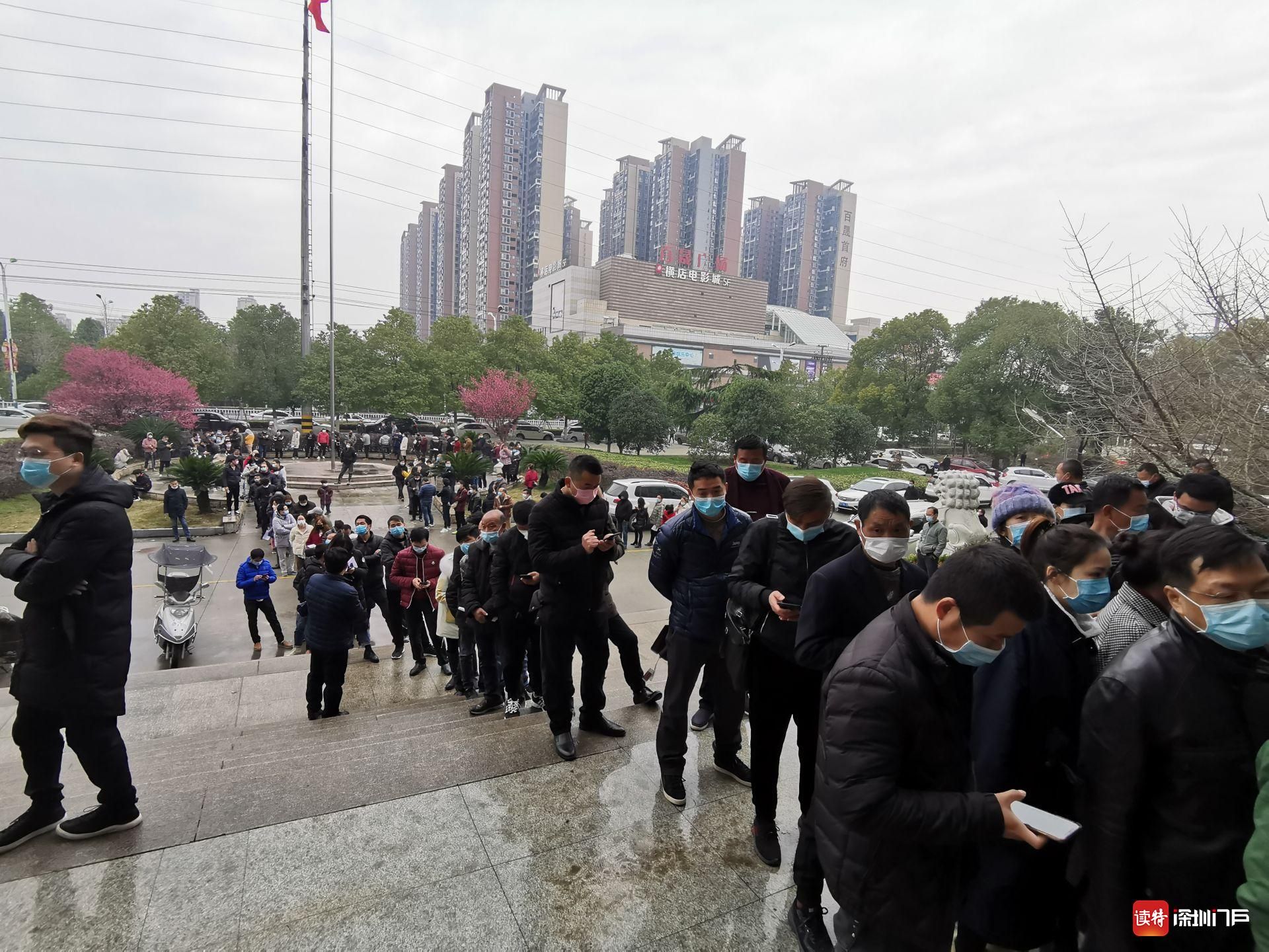 2月23日,監(jiān)利縣交通局門前排隊申請返回工作地的當?shù)厝罕姟2痪?,湖北再次升級封控措施,直到近日才逐漸恢復(fù)正常交通。