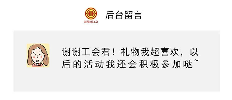 2.在留言區(qū)寫(xiě)下你與“深圳工會(huì)”的回憶或是對(duì)“深圳工會(huì)”公眾號(hào)內(nèi)容的建議。