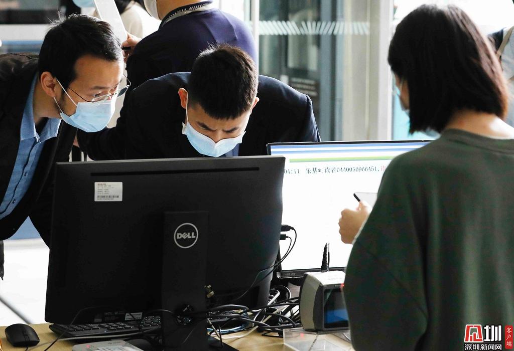 深圳圖書(shū)館入口處,工作人員正在驗(yàn)證入場(chǎng)者的讀者證。