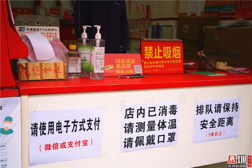 另一家在福田區(qū)華發(fā)北路,店號為83021044的投注站點,門口已經(jīng)被店員用桌子堵上,并貼上了相關(guān)防疫告示,“之前深圳福彩中心的工作人員來檢查過,后續(xù)也會給我們配送一些防護物資。”記者在此觀察了30分鐘,期間僅有兩位彩民前來,共購買了8元彩票。店主馬先生向記者介紹,“以前大家都會來店里邊坐,主要買的是20分鐘開兩次的‘快樂彩’,現(xiàn)在都不給進來,那個彩票也暫停銷售了?!?nbsp;