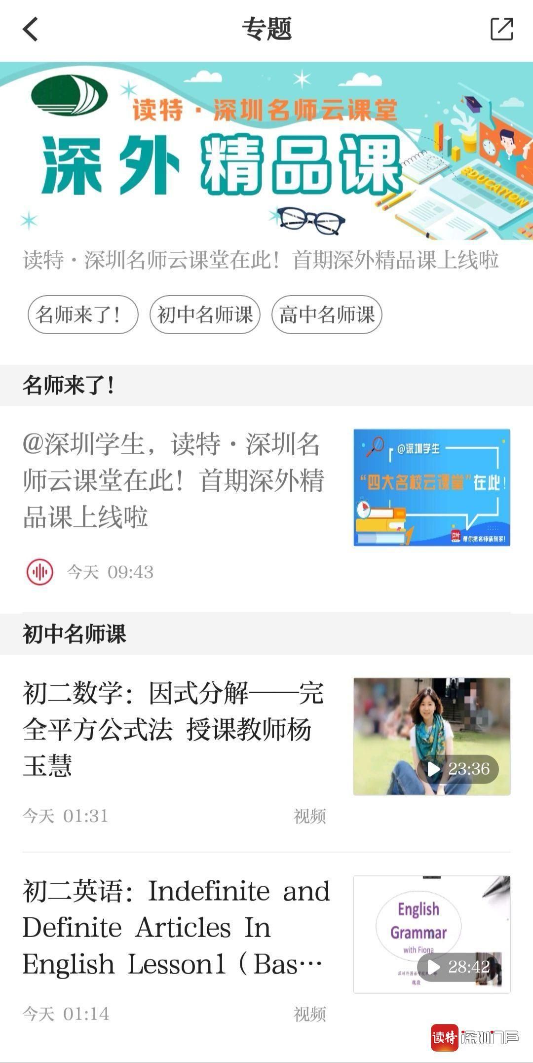 編者按:為了更好地助力全市中小學(xué)生“停課不停學(xué)”,讀特聯(lián)合深圳外國語學(xué)校等名校,把名師請(qǐng)到家。即日起,深外第二期精品課堂在讀特重磅上線,為廣大學(xué)子提供優(yōu)質(zhì)的網(wǎng)上課程資源。