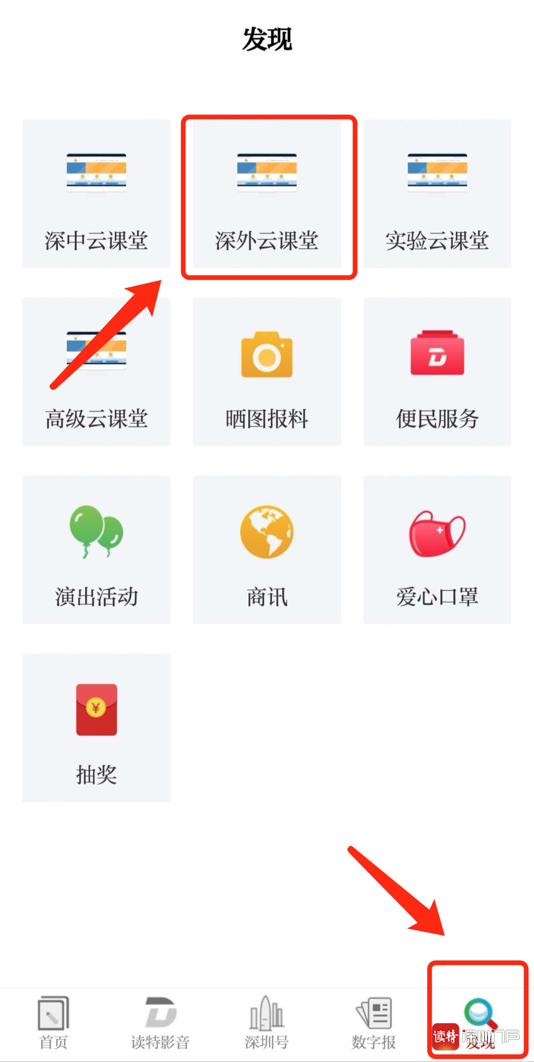 “發(fā)現(xiàn)”頻道也可直接找到“深外云課堂”
