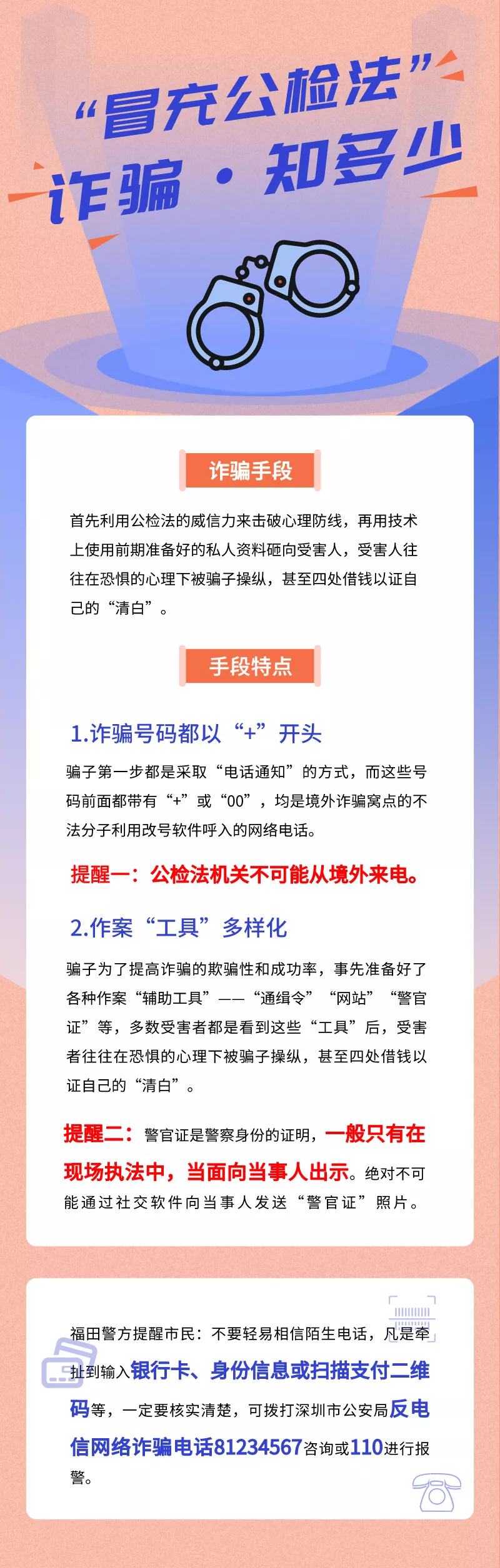 你是否收到過(guò)這樣的電話(huà):你涉嫌詐騙!你洗黑錢(qián)!你的身份證被盜用,有犯罪行為!……如果有,請(qǐng)千萬(wàn)警惕,這些都是冒充公檢法人員進(jìn)行電信詐騙的常用語(yǔ)言!接到這樣的電話(huà)千萬(wàn)別信!