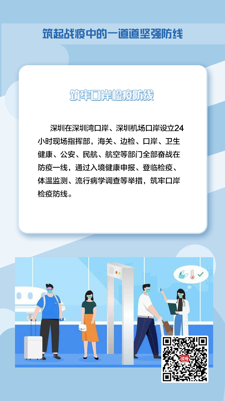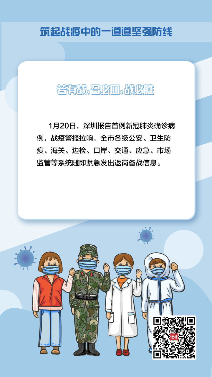 牢記習(xí)近平總書記的重要指示,深圳在新冠肺炎疫情防控的人民戰(zhàn)爭、總體戰(zhàn)阻擊戰(zhàn)中,鑄造了一支由不同“兵種”、精銳之師組成的守護(hù)者隊伍,堅定地筑起一道堅強(qiáng)屏障,守護(hù)好城市“外防輸入、內(nèi)防擴(kuò)散”的門戶。