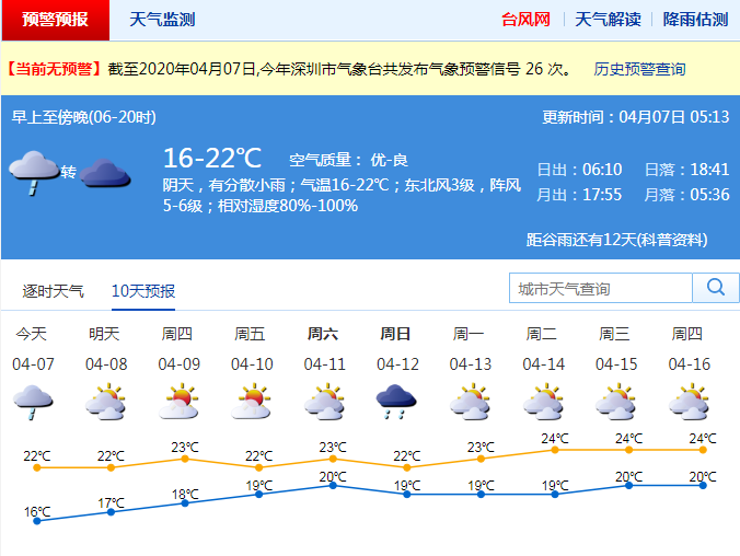 市氣象專家解釋稱,大家感覺冷,主要是此次冷空氣配合降雨。雖然清明節(jié)冷空氣不強(qiáng),但它南下深圳時,結(jié)合暖濕氣流下雨,體感就會比較冷。6日白天一直在下雨,最低氣溫在15℃左右,氣溫一直升不上去。