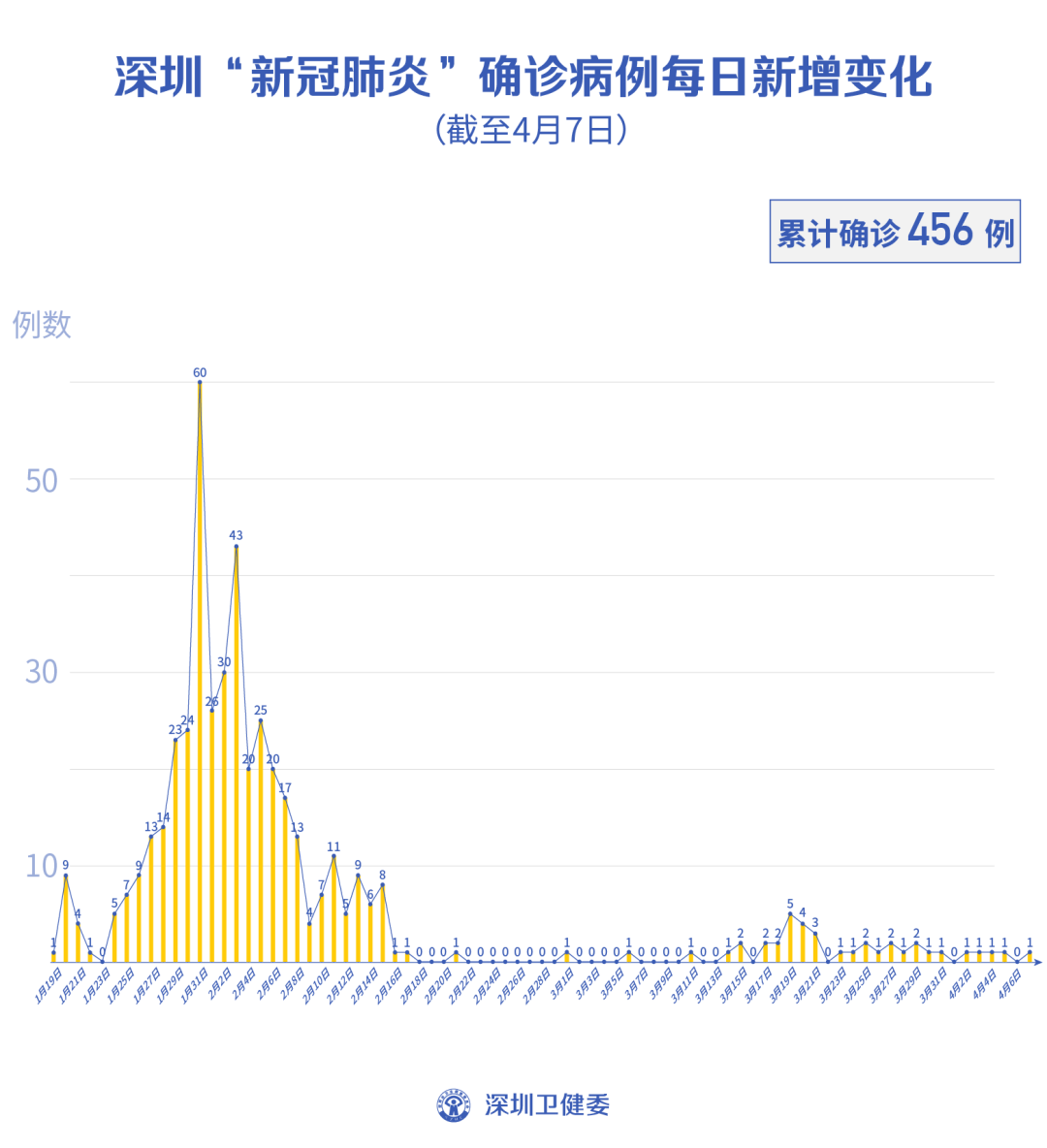截至4月7日24時(shí),深圳累計(jì)報(bào)告新冠肺炎病例456例。4月7日當(dāng)天新增境外輸入病例1例,新增無(wú)癥狀感染者1例,出院1例。