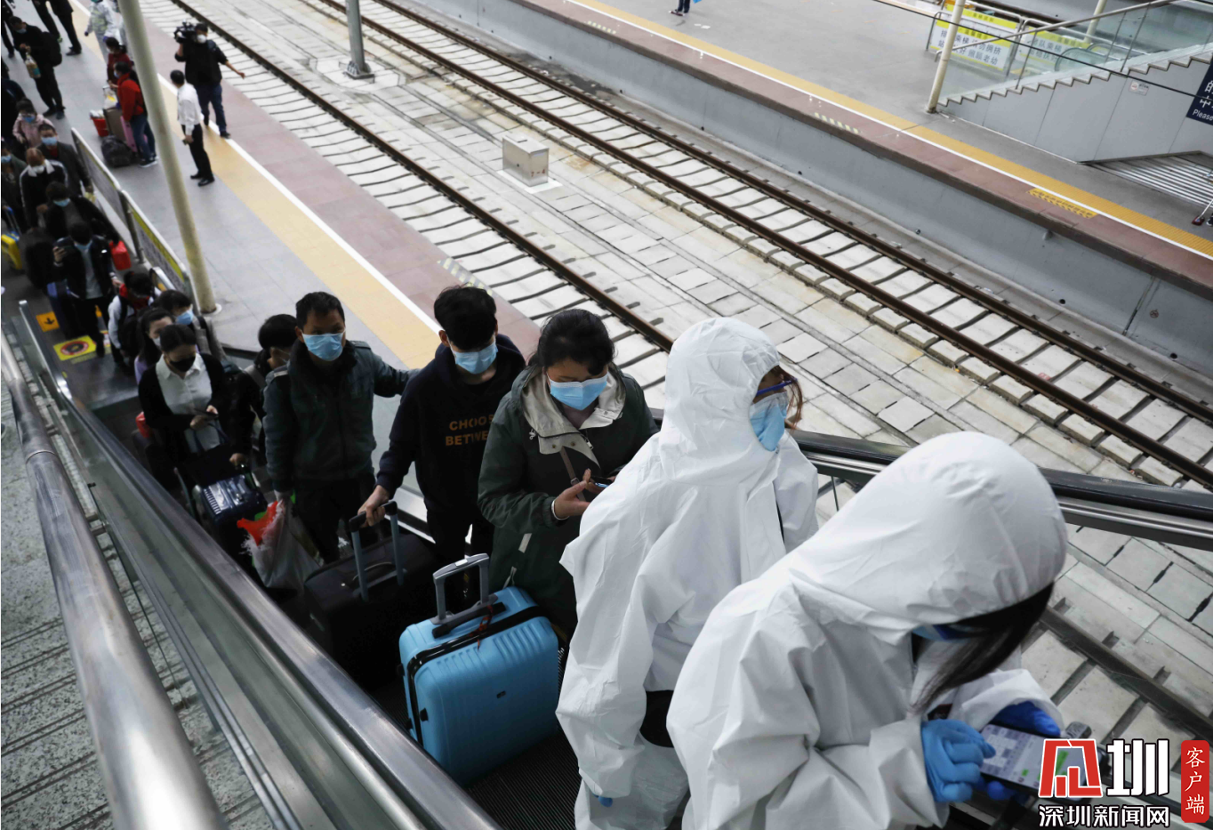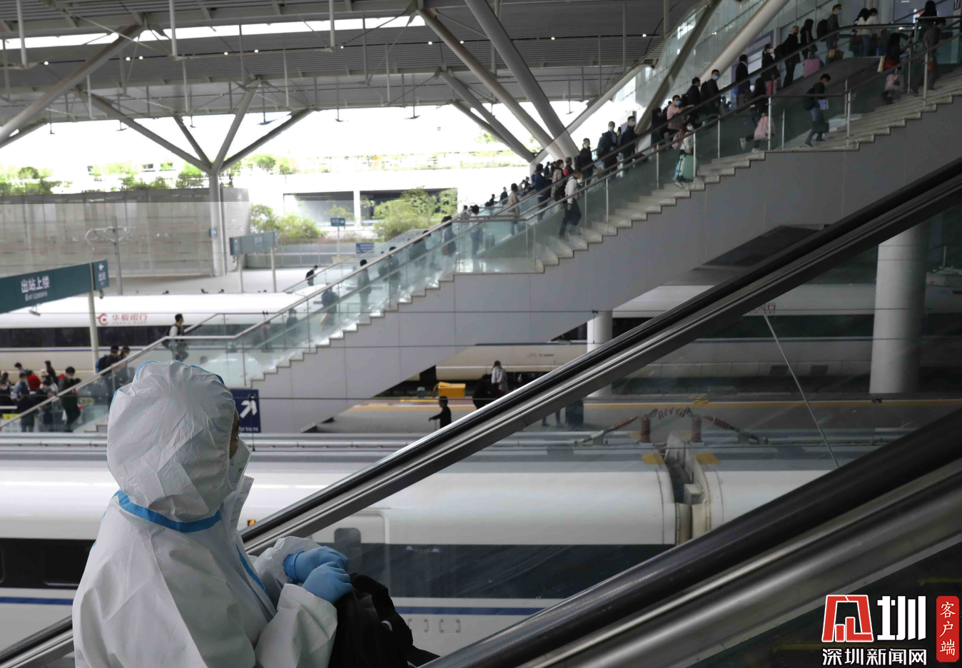4月8日中午13點02分,G1005次高鐵到達深圳北站14站臺。