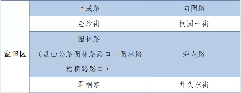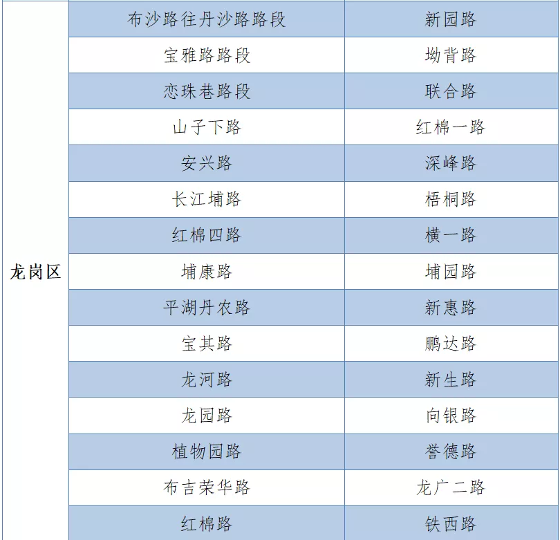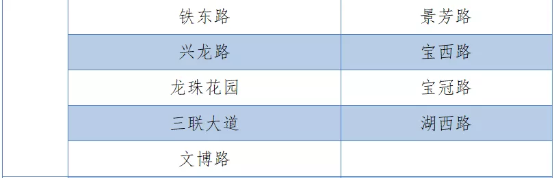 具體設(shè)置路段請(qǐng)看表格