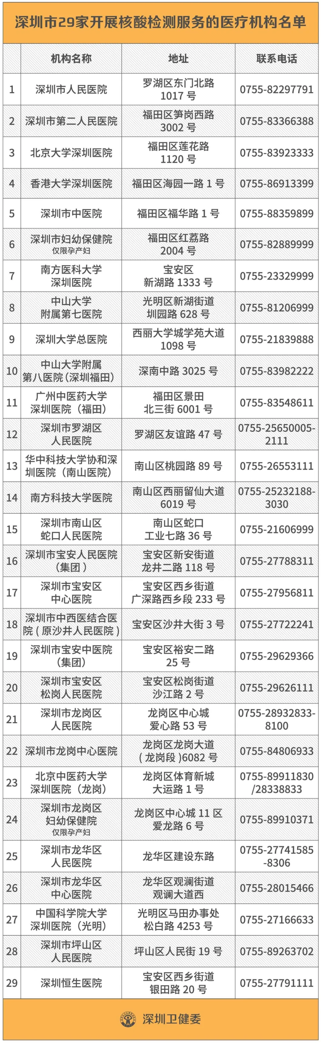 目前,深圳已有29家醫(yī)院面向公眾提供新冠病毒核酸檢測服務(wù)。
