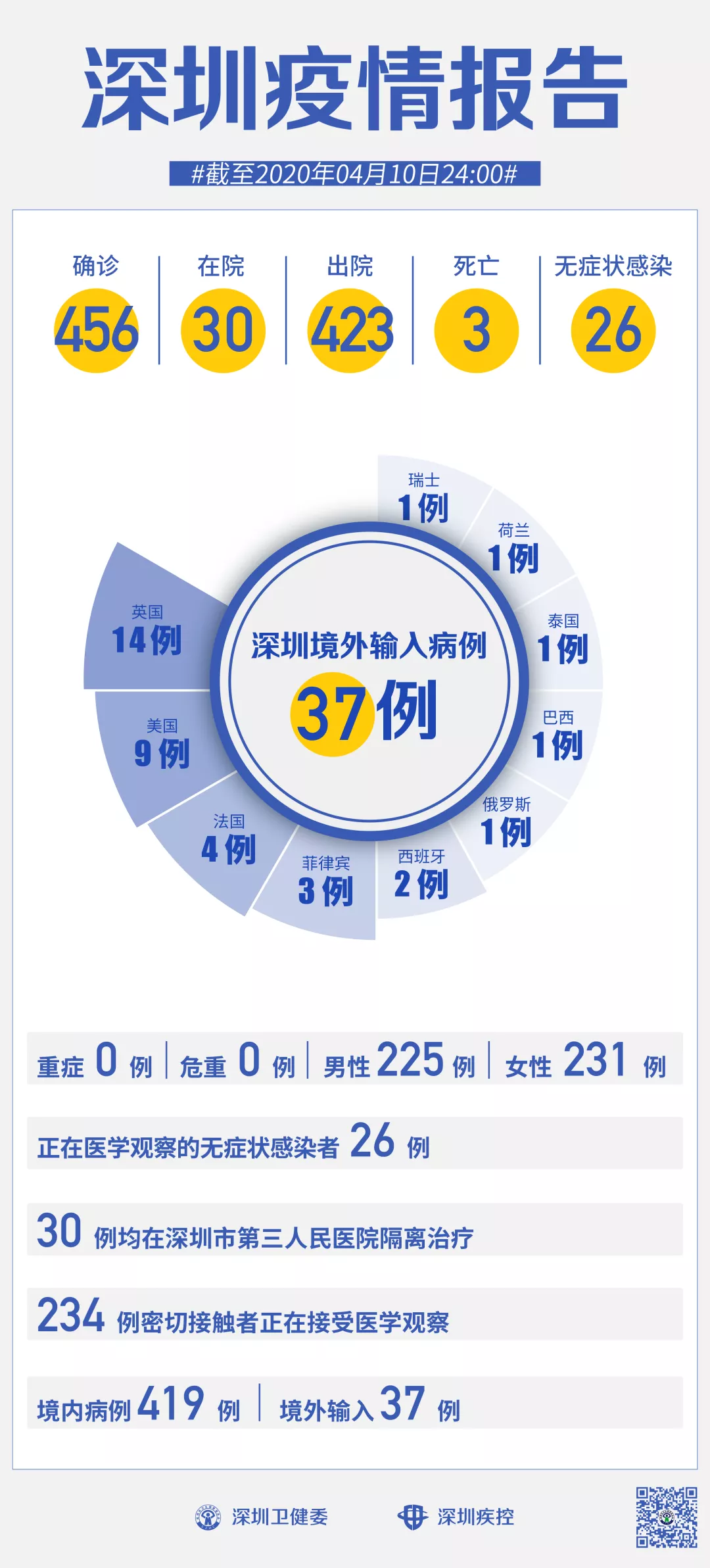 截至4月10日24時,深圳累計報告新冠肺炎病例456例。