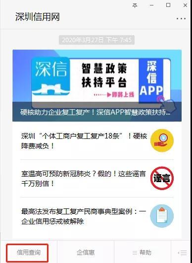 ▲深圳信用微信公眾號也可查詢。