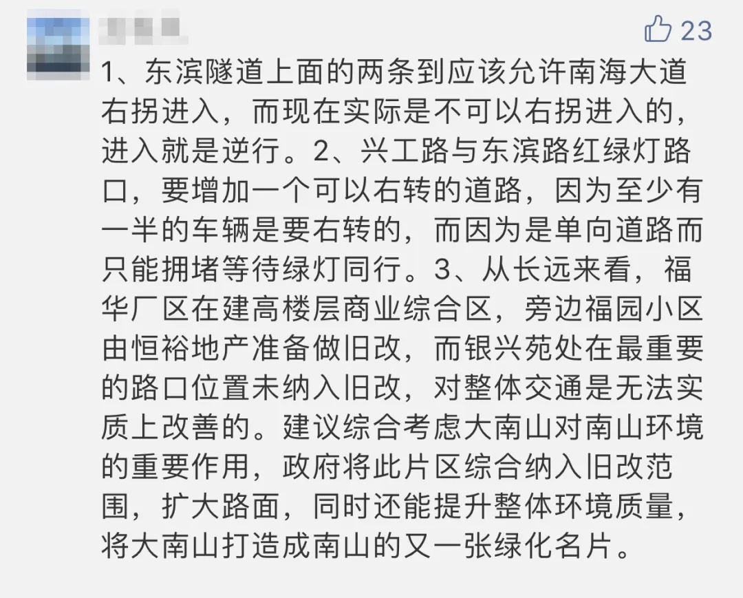 “建議對(duì)銀興苑舊改,拓寬馬路。”