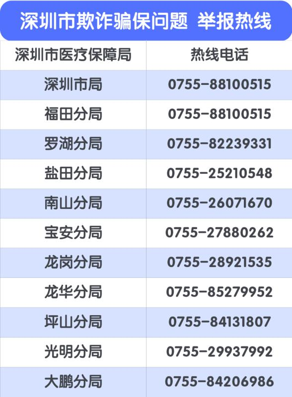 市醫(yī)保局已在深圳市各區(qū)設(shè)立投訴舉報電話,歡迎廣大市民共同參與醫(yī)?;鸨O(jiān)督管理。市民可通過實名舉報和匿名舉報方式檢舉、揭發(fā)欺詐騙保行為,經(jīng)查證屬實的,將根據(jù)《深圳市欺詐騙取醫(yī)療保障基金行為舉報獎勵實施細則(試行)》對舉報人予以獎勵,獎金最高可達10萬元?。ㄓ浾?莊瑞玉)