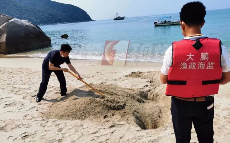 為避免對附近海域及沙灘造成影響,執(zhí)法人員在咨詢相關專家后將該海豚尸體現(xiàn)場進行無害化掩埋。