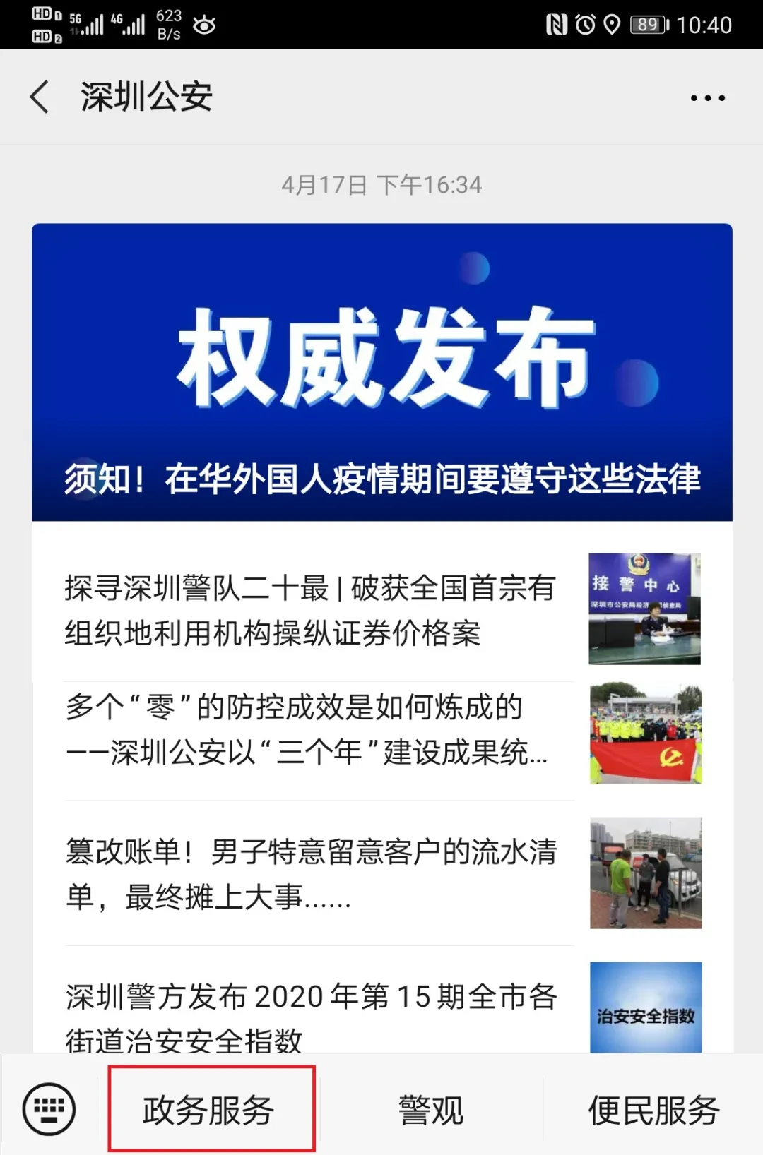居住證狀態(tài)可通過微信公眾號“深圳公安”進行查詢。
