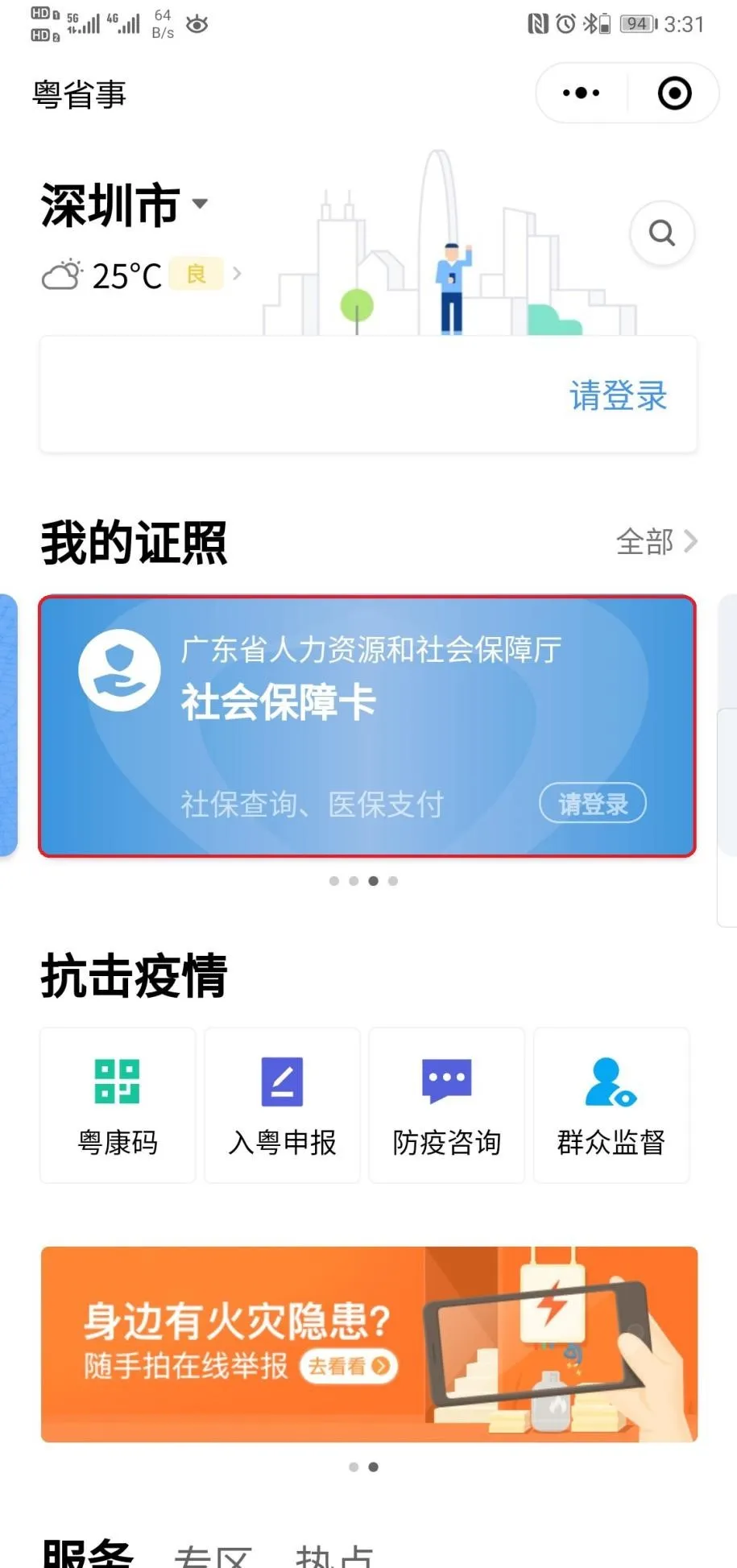 1、通過“粵省事”微信小程序查詢,微信搜索“粵省事”小程序,登錄后,在“我的證照”添加“社會保障卡”;