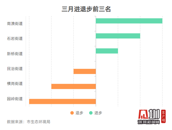 2020年一季度各街道數(shù)據(jù)顯示,桃源街道、黃貝街道和南湖街道空氣質(zhì)量排名始終保持在前十位,而馬田街道、新安街道、觀瀾街道、福城街道、筍崗街道、沙河街道、華強(qiáng)北街道和沙井街道空氣質(zhì)量排名連續(xù)三次墊底。