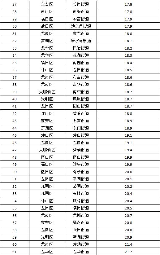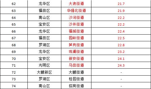 注:大鵬、桂園及招商等街道由于儀器故障及斷電等原因,有效數(shù)據(jù)不足。