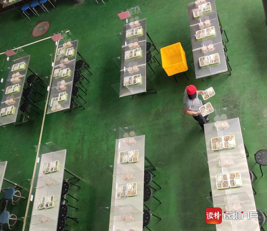 梅林中學(xué):用餐前服務(wù)人員已將飯盒放在桌上