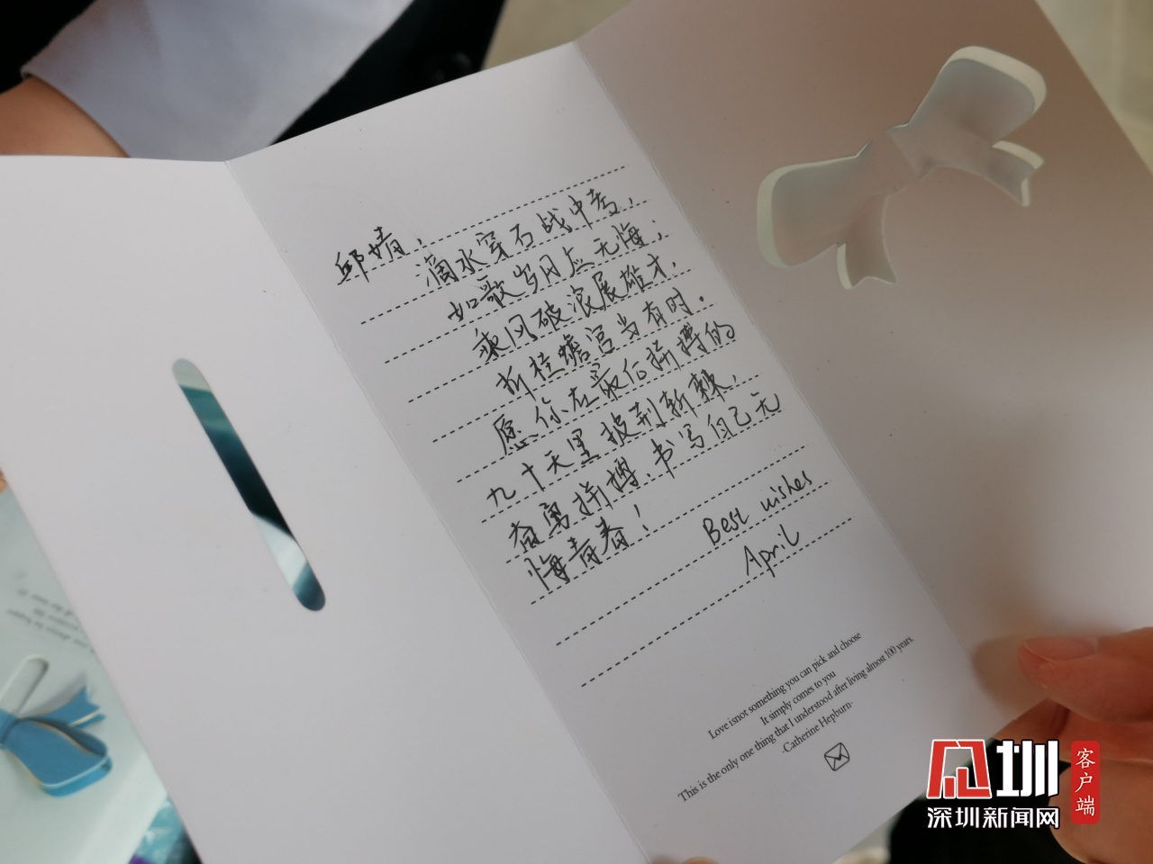龍華區(qū)外國(guó)語(yǔ)學(xué)校邱婧同學(xué)收到老師祝福卡(鄭瑞欣 攝)