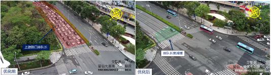 針對這一現(xiàn)象,深圳交警將東向一條直行車道改為左轉(zhuǎn)車道,并根據(jù)實(shí)際流量提高了東方向左轉(zhuǎn)綠燈時長。優(yōu)化后路口排隊現(xiàn)象得到緩解路口總平均排隊長度由310米下降至168米,降幅45.80%。