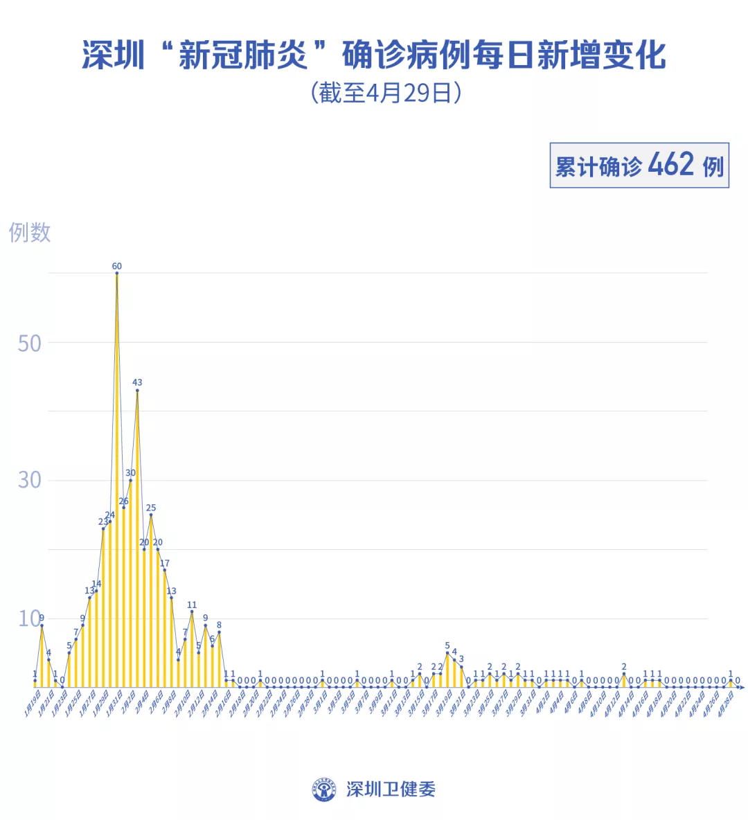 截至4月29日24時,深圳累計報告新冠肺炎病例462例。4月29日當天新增出院3例。