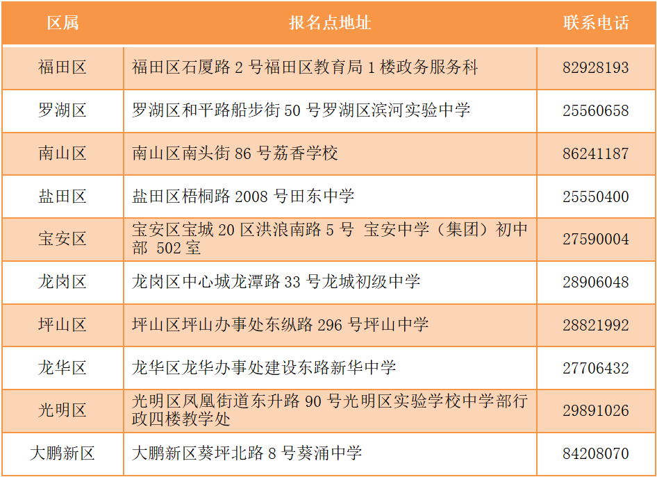 見(jiàn)圳客戶端·深圳新聞網(wǎng)2020年4月30日訊 據(jù)深圳市教育局消息,2020年深圳高中階段學(xué)校招生考試(以下簡(jiǎn)稱“中考”)報(bào)名定于5月6日-15日進(jìn)行,考試時(shí)間為7月20日-21日。 今年本市應(yīng)屆初中畢業(yè)生仍繼續(xù)在就讀學(xué)校集體辦理報(bào)名手續(xù)。符合深圳中考報(bào)名條件的深圳戶籍往屆生、在市外就讀的深圳戶籍應(yīng)屆初中畢業(yè)生(以下簡(jiǎn)稱“社會(huì)類考生”)采用網(wǎng)上報(bào)名方式進(jìn)行報(bào)名。 報(bào)名條件 一、具有我市戶籍的初中畢業(yè)生,可以在我市報(bào)名參加中考。 二、具有我市初三學(xué)籍的隨遷子女可以報(bào)名參加中考,同時(shí)符合以下條件的,可以參加相應(yīng)的公辦普高、民辦普高和中職學(xué)校的劃線錄取。 (一)父親或母親在我市具有合法穩(wěn)定職業(yè); (二)父親或母親在我市具有合法穩(wěn)定住所; (三)父親或母親持有有效《深圳經(jīng)濟(jì)特區(qū)居住證》; (四)父親或母親在我市繳納基本養(yǎng)老保險(xiǎn)及基本醫(yī)療保險(xiǎn),且至少其中一個(gè)險(xiǎn)種累計(jì)繳費(fèi)滿3年,社保累計(jì)年限計(jì)算截至2020年8月31日; (五)隨遷子女在我市具有3年完整初中學(xué)籍。 不符合上述條件但具有我市初中學(xué)籍的隨遷子女,可以在我市參加中考,但僅限于參加民辦普高補(bǔ)錄或中職學(xué)校注冊(cè)入學(xué)。 三、高中階段學(xué)校在校生不得報(bào)名。 本市應(yīng)屆初中畢業(yè)生報(bào)名辦法 本市應(yīng)屆初中畢業(yè)生于5月6日至7日在就讀學(xué)校集體辦理報(bào)名手續(xù)。 今年中考繼續(xù)實(shí)行網(wǎng)上報(bào)名。要求各學(xué)校開(kāi)放計(jì)算機(jī)房,為本??忌暇W(wǎng)報(bào)名提供方便。 5月8日至15日,學(xué)校組織考生進(jìn)行電子攝像,學(xué)校和考生分別上網(wǎng)錄入報(bào)名信息,考生錄入信息可參考“考生錄入信息流程圖”進(jìn)行操作。 市教育局強(qiáng)調(diào),學(xué)校不得以任何理由拒絕有本校學(xué)籍的應(yīng)屆畢業(yè)生報(bào)考(參加中職學(xué)校自主招生、注冊(cè)入學(xué)的考生,也須報(bào)名參加中考)。如有違反者,將嚴(yán)肅查處,并追究相關(guān)人員責(zé)任。同時(shí)要求各區(qū)有關(guān)職能部門、各有關(guān)學(xué)校(報(bào)名點(diǎn))要嚴(yán)格審查報(bào)名材料。對(duì)不符合報(bào)名條件、弄虛作假而被錄取的考生,一經(jīng)發(fā)現(xiàn),取消其錄取資格;已經(jīng)到錄取學(xué)校報(bào)到注冊(cè)的,取消其學(xué)籍,并追究相關(guān)人員責(zé)任。 社會(huì)類考生報(bào)名辦法 社會(huì)類考生采用網(wǎng)上報(bào)名方式進(jìn)行報(bào)名。報(bào)名考生需在5月6日至15日登錄報(bào)名網(wǎng)址(http://www.szzk.edu.cn/),按照提示進(jìn)行網(wǎng)上注冊(cè),上傳報(bào)名審核資料,由考生戶籍所在區(qū)社會(huì)報(bào)名點(diǎn)進(jìn)行線上審核,審核通過(guò)后系統(tǒng)將生成中考考生號(hào)及初始密碼,考生需用獲取的考號(hào)及密碼登錄中考中招管理系統(tǒng),填寫個(gè)人信息,具體操作可參考“考生錄入信息流程圖”。同時(shí)需在報(bào)名截止前根據(jù)指引完成網(wǎng)上繳費(fèi)。 若考生網(wǎng)上報(bào)名審核不通過(guò),需按照系統(tǒng)的不通過(guò)原因提示,重新補(bǔ)充審核資料,如多次上傳資料失敗或?qū)徍瞬煌ㄟ^(guò),考生可撥打戶籍所在區(qū)的社會(huì)報(bào)名點(diǎn)電話進(jìn)行咨詢或電話預(yù)約,按照工作人員指示進(jìn)行操作報(bào)名,不要在未預(yù)約的情況下前往社會(huì)報(bào)名點(diǎn),盡量避免出行,減少人員聚集。 社會(huì)類考生操作流程如下圖: 考生錄入信息操作流程如下圖: 中考社會(huì)報(bào)名點(diǎn)一覽表 深圳各類考生具體報(bào)考范圍、各類升學(xué)資格申報(bào)所需條件和材料以及相關(guān)報(bào)名要求,考生可通過(guò)深圳市招生考試辦公室官網(wǎng)(zkb.sz.gov.cn)及官方微信公眾號(hào)(深圳市招生考試辦公室)查閱,市招考辦也將第一時(shí)間通過(guò)上述渠道發(fā)布各類中考資訊。