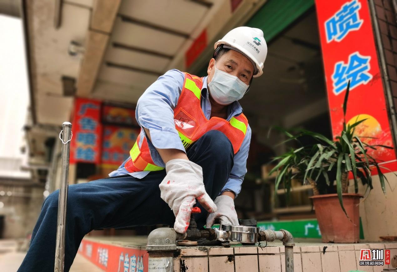 福田分公司福中水務(wù)所維修工陳國明,正對(duì)水表進(jìn)行關(guān)停,