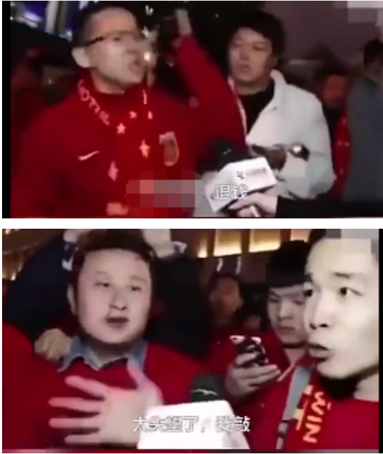 他們守在國足的現(xiàn)場(chǎng)采訪球迷。
