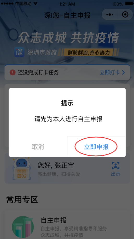第二步:點(diǎn)擊底部菜單欄“健康申報(bào)”-“深i您”進(jìn)入申報(bào)系統(tǒng)。
