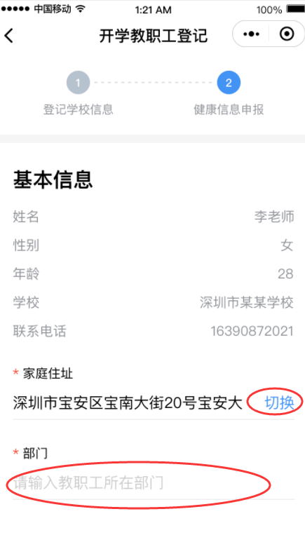 ③完成健康信息申報(bào),包括選擇家庭住址、填寫(xiě)所在部門、申報(bào)健康情況等,請(qǐng)勾選申報(bào)承諾,點(diǎn)擊“生成師生健康碼”即可完成健康申報(bào)。