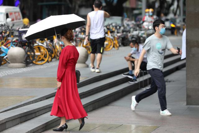 連日來(lái),深圳又悶又熱的夏天模式開(kāi)啟,驕陽(yáng)似火的天氣,最高氣溫達(dá)到33 ℃。在深圳街頭,出行的人們用各種方式抵擋烈日。天氣驟熱,逛公園、海濱棧道的人少了,零零散散的人們尋找陰涼地漫步,打發(fā)悶熱時(shí)光。