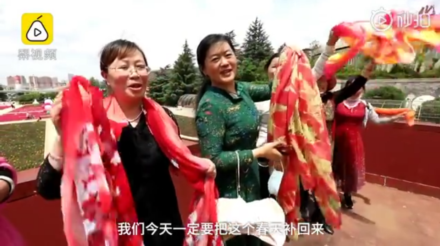 大媽們帶50條絲巾到景區(qū)拍照:要把春天補回來