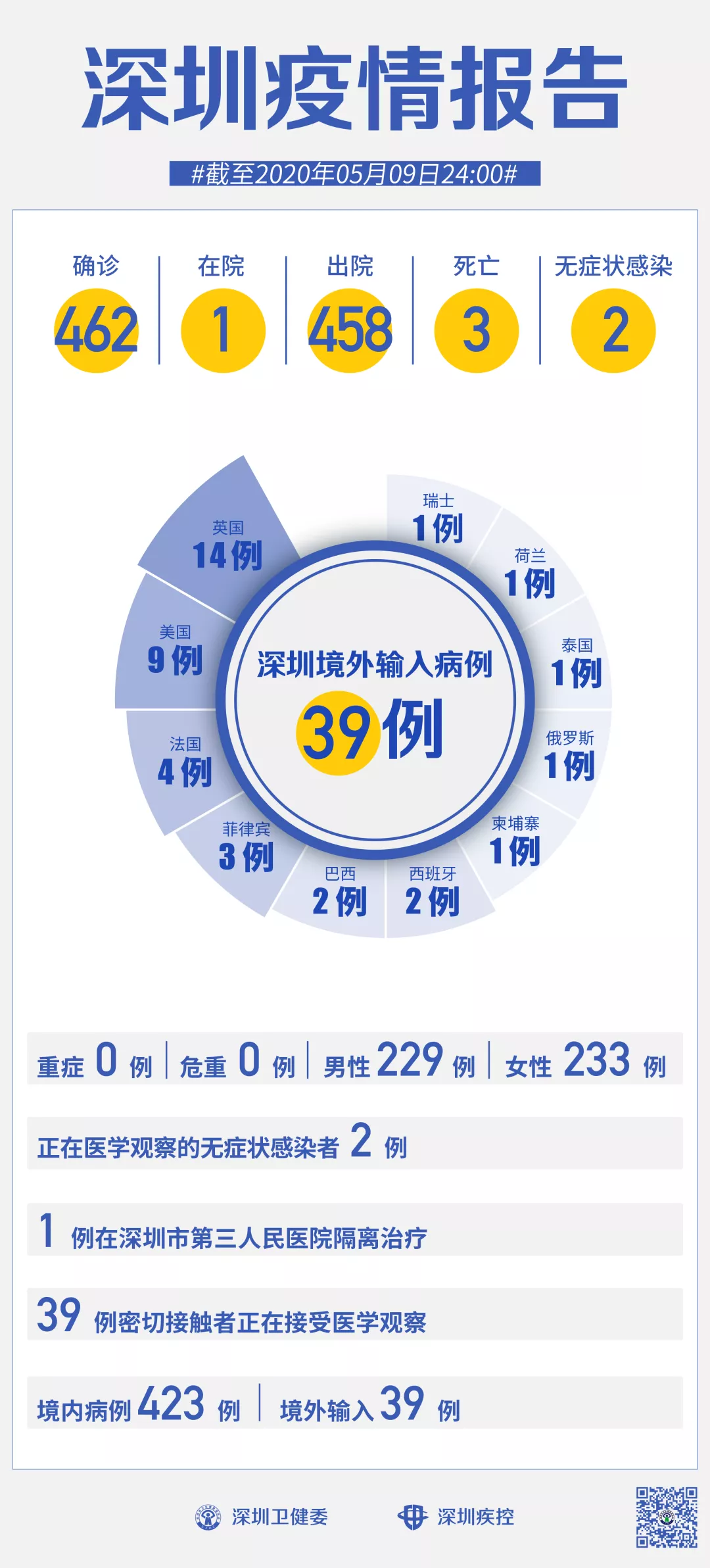 截至5月9日24時(shí),深圳累計(jì)報(bào)告新冠肺炎病例462例。
