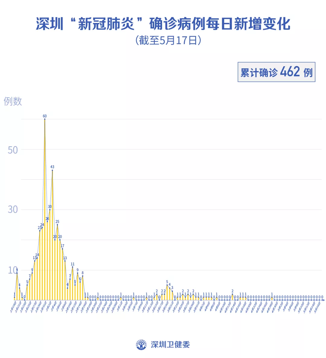 截至5月17日24時(shí),深圳累計(jì)報(bào)告新冠肺炎病例462例。