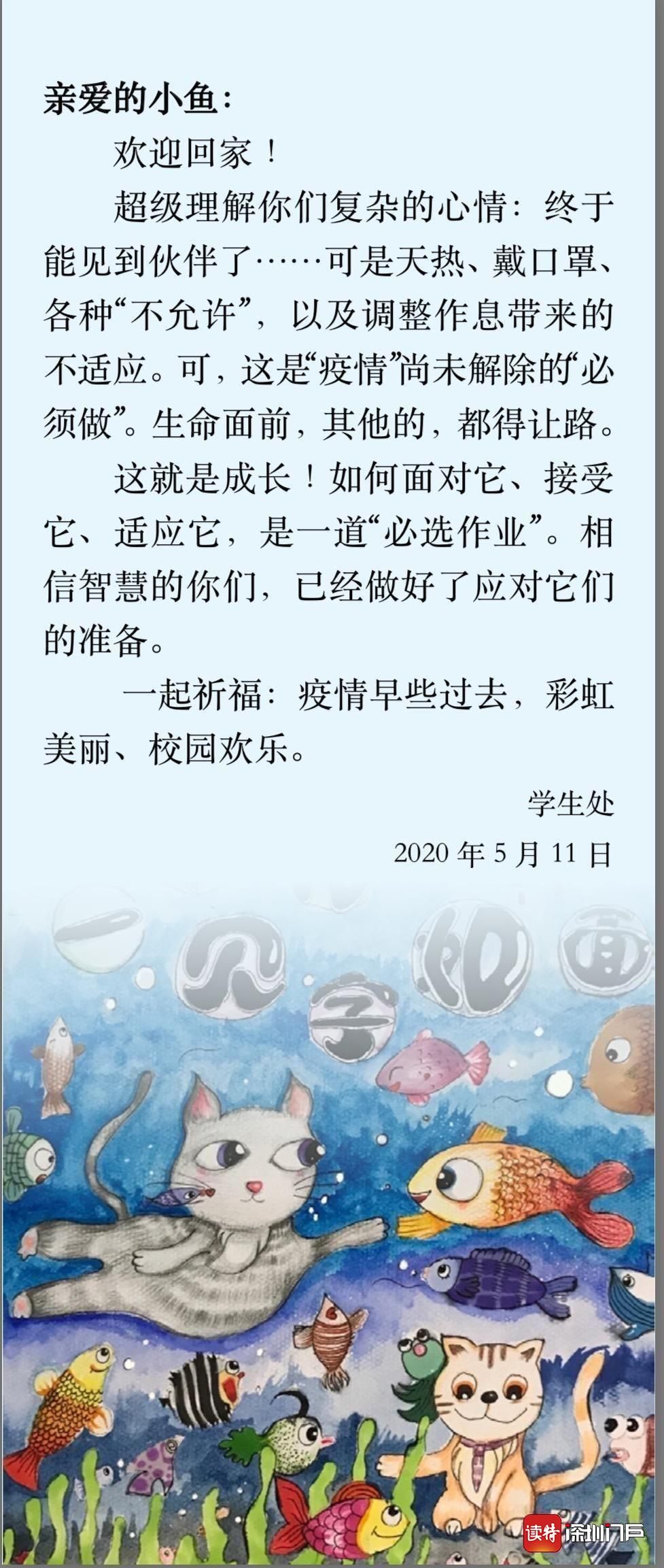 揚(yáng)美實(shí)驗(yàn)的老師們捧著特制歡迎牌,向返校的孩子們問好。家長義工們身穿綠馬甲、手持小紅旗,在校門附近疏通交通,為孩子們保駕護(hù)航。揚(yáng)美學(xué)子佩戴口罩,按照錯(cuò)峰時(shí)間表通過體溫測量儀,有序進(jìn)入校園。