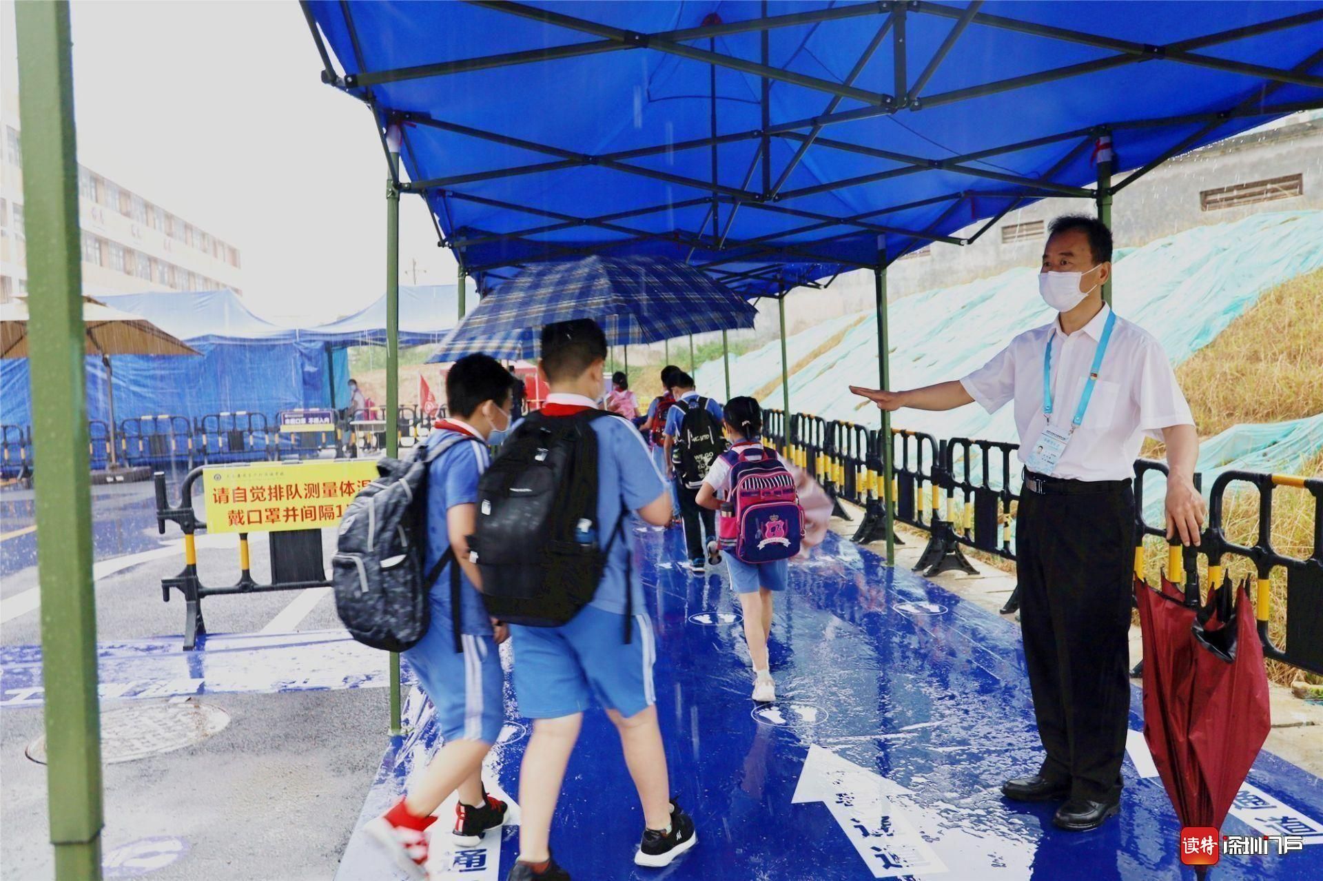 龍崗二職開學(xué)第一天,傾盆暴雨阻擋不住同學(xué)們開學(xué)的笑臉。校長、轄區(qū)民警、教師黨員志愿者早早在校門口迎接同學(xué)們回“家”。這是闊別三月的重逢,少年歸來依舊春風(fēng)滿面。